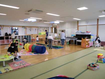 7月7日(水)いちごサークル・その1 公開日 2021/07/08 更新日 2021/07/08 子育て支援 今日は七夕。いちごサークルに6組のお友達が遊びに来て、ママと七夕飾りを笹竹に飾ったり好きな遊びを楽しんだりしました。集まりの会では、バイキンマンに名前を呼んでもらうと「はーい」と手を上げる子やバイキンマンにタッチしにくる子もいて、少しずつ集まりの会に慣れてきているようです。アンパンマンの手遊びも上手にできましたよ。
