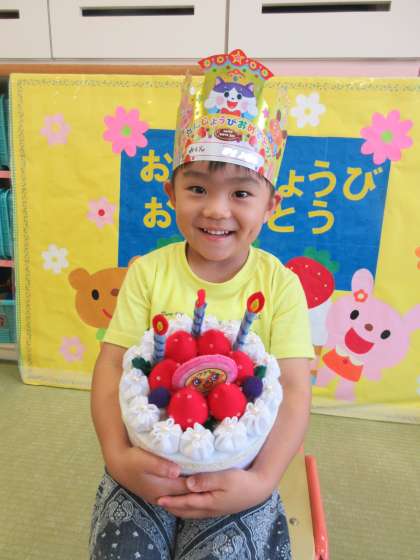 登園日に8月生まれの誕生会をしました。それぞれのクラスでお誕生日のお友達をお祝いし、プレゼントを渡しました。お誕生日おめでとうございます。