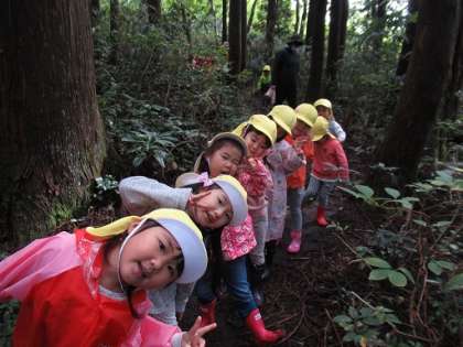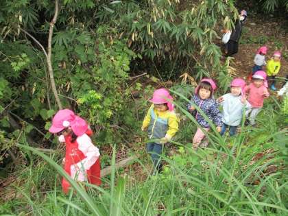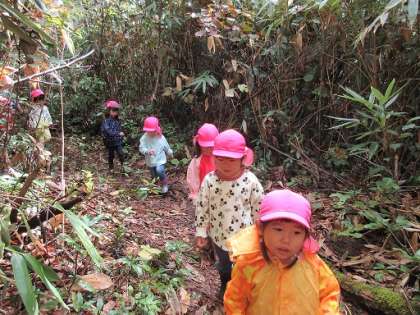 バスに乗って立山青少年自然の家へ行ってきました。年少は「トントンの森」に入って散策してきました。短いコースでしたがでこぼこ道を歩いたり、少しずつ紅葉している葉っぱを見て「黄色になってる」「赤色だよ」と秋らしい景色を見つけたりすることを楽しんでいましたよ。