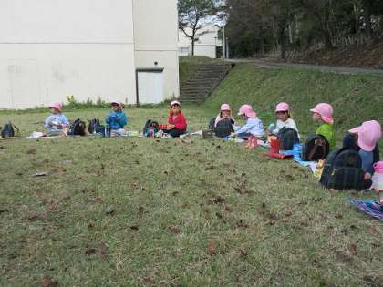 天気が良かったので芝生にレジャーシートを敷いてお弁当を食べました。遠足の準備のご協力ありがとうございました。
