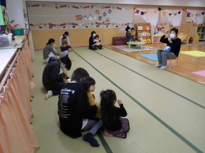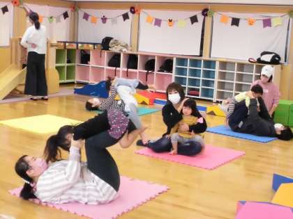 10月20日(水)いちごサークル:その1 公開日 2021/10/21 更新日 2021/10/21 子育て支援 今日は、雨が降って肌寒い日でしたが、7組のお友達が集まってくれました。名前を読んだり手遊びを楽しんだ後、講師に宮原寛子先生をお招きして「親子運動教室」を行いました。子供の足裏・ふくらはぎ・お腹などをマッサージしながら健康チエックの仕方を教えていただきました。