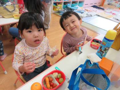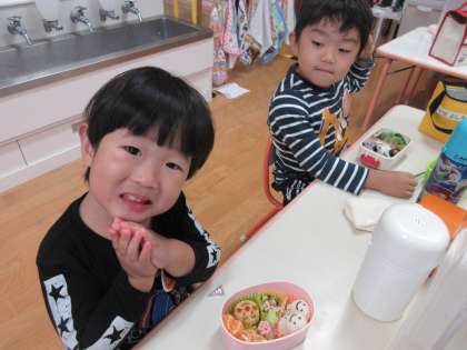朝からお弁当が楽しみでワクワクしていた子どもたち。お弁当のふたを開けた瞬間、みんなとても嬉しそうな笑顔でした♪