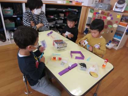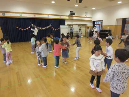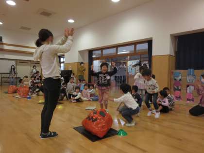 年中組の保育参観ありがとうございました! 公開日 2021/11/08 更新日 2021/11/08 年中もも・すみれ組 4日間に分かれてもも組、すみれ組の保育参観がありました。 1日目はハロウィンのゲームと踊り、2日目はハロウィンの冠づくり、3日目と4日目は楽器遊びをしました。子供たちにとっては初めての保育参観!子供たちはおうちの方に見てもらうのをドキドキしたり楽しみにしたりしながら待っていました。 お忙しい中、お越しくださりありがとうございました。