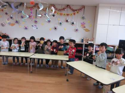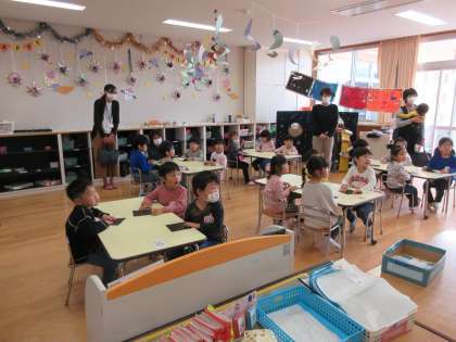 年中組の保育参観ありがとうございました!(その2) 公開日 2021/11/08 更新日 2021/11/08 年中もも・すみれ組 冠づくりでは折り紙で猫をつくりました。 発表会に向けていろんな楽器に触れて楽器遊びを楽しんでいるところもみていただきました。