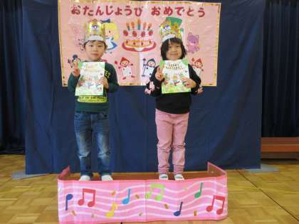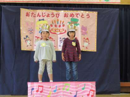 今日は11月生まれの誕生会がありました。それぞれの学年でお誕生日のお友達をお祝いして、インタビューをしたり、プレゼントを渡したりしました。お誕生日おめでとうございます。