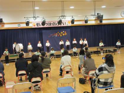 生活発表会がありました1 公開日 2021/12/15 更新日 2021/12/15 年中もも・すみれ組 12月9日にもも組、10日にすみれ組の生活発表会がありました。クラスごとに『ビビディバビディブー』の合奏と、年中組みんなで『シンデレラ』の劇あそびを発表しました。