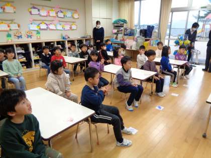 今日は3学期の始業式をしました。新型コロナウイルス感染症対策のため、各保育室で放送でお話を聞きました。先生の話を聞く力、友達の気持ちを大切にする力、また自分の思いをしっかりと相手に伝えられる力を子供たちが育んでいけるよう、職員一同保育に努めたいと思います。