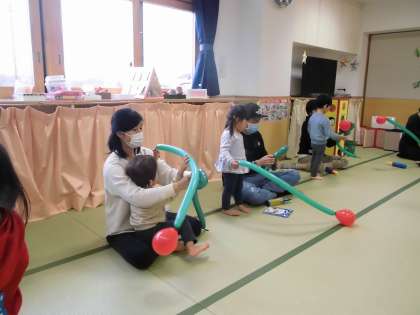 今日の親子サークルは、講師に和泉先生、吉野先生をお招きして「バルーンアートを楽しもう」を行いました。
