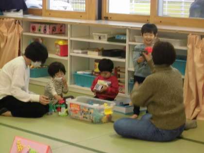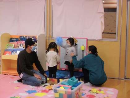 今日の親子サークルはクリスマスに向けて、サンタクロースやトナカイの形のスノードームをつくりました。