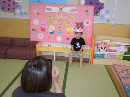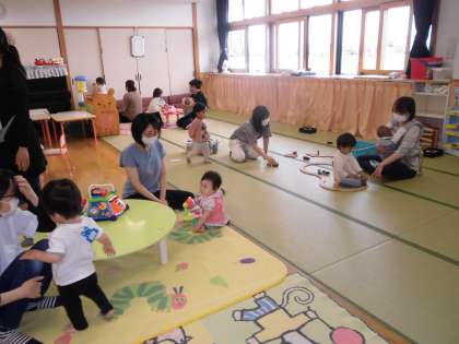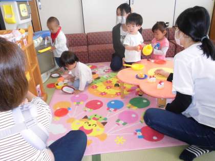 第2回親子サークルは、発育測定や4・5月生まれの誕生会をしました。みんなでお祝いをしたり、エプロンシアターを見たりし、楽しい時間を過ごしました。