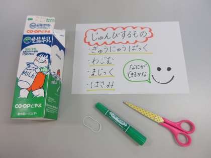 お家にある材料を使ってつくる製作です。つくって遊んでみてくださいね。