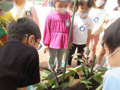 ほし組の分散登園日でした(5/25) 公開日 2020/05/25 更新日 2020/05/25 年長ほし・にじ組 今日はほし組の分散登園でした。 登園してから手洗い、うがいをしてお友達とたっぷり遊んで嬉しそうなみんなでした。 野菜の観察をすると、「トマトがなってるね!」「お花ができてきてるよ!」といろんな発見がありました。
