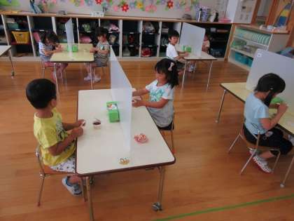 にじ組の分散登園日(5/26) 公開日 2020/05/27 更新日 2020/05/27 年長ほし・にじ組 今日はにじぐみの分散登園でした。 久しぶりに友達と遊び、嬉しそうな子供たちでした。野菜に水やりをしたり、園庭で遊んだりして楽しく過ごしましたよ。 おやつはゼリー!冷えていておいしかったね。 また、遅くなってしまいましたが、こいのぼりづくりもしました。完成が楽しみですね。