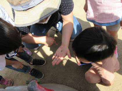 ほし組登園日2日目(5/27) 公開日 2020/05/27 更新日 2020/05/27 年長ほし・にじ組 今日は園庭や遊戯室でたっぷり友達と遊びました。園庭であおむしを見つけた子どもたち、とても興味津々でした。また、夏野菜の畑の名前をみんなで話し合うと、「カラフル畑!」「やさいいっぱい畑は?」と、いろんな名前が挙がりました。