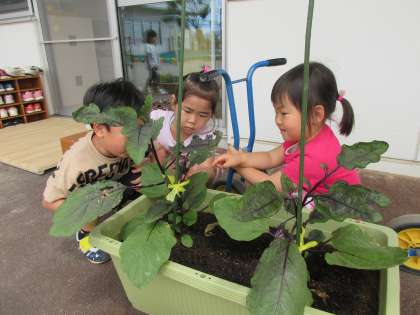 園庭で遊んでいる時は、脱水症状を防ぐためマスクを外して活動しました。お部屋に戻ってからは、手洗い・うがい、水分補給をしマスクをして生活しています。