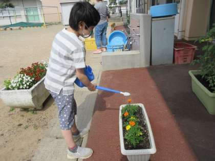 熱中症予防のため、戸外では、適宜マスクを外したり、十分に水分補給をしたりしながら過ごしていきたいと思います。
