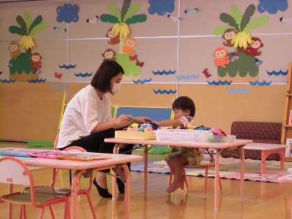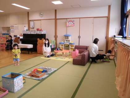 7月15日いちごクラブ 公開日 2020/07/15 更新日 2020/07/15 子育て支援 今日は、1学期最後の1歳児サークルでした。4月〜7月生まれの誕生会を予定していたのですが、残念ながら誕生児が欠席のうえ参加者も2組と少人数のサークルになってしまいました。でも、参加してくれた2組のお友達は、ママと一緒にゆったりと流れる時間の中で、気に入ったオモチャでじっくり遊びこむことができました。