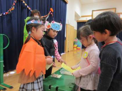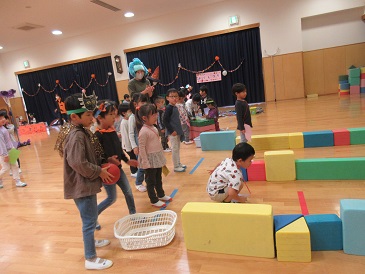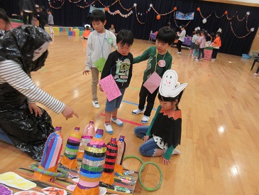 当日は、年中さん・年少さんと一緒に縦割りグループになりパーティーのコーナーを回りましたよ。優しく声をかけたり遊び方を教えたりして格好いい年長さんでした。