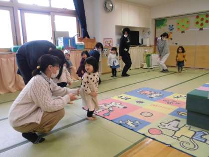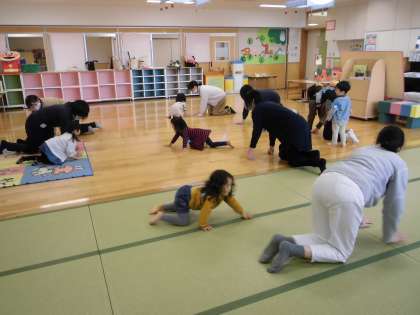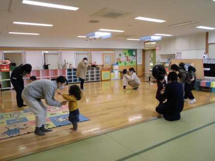 11月10日(火)メロンクラブ:その2 公開日 2020/11/11 更新日 2020/11/11 子育て支援 大型絵本を読んだ後、登場人物の真似をしたり親子で「わーお」の体操をしたりして、みんなで楽しいひと時を過ごしました。