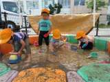 6月21日(月) 砂場に水を入れて川のようにすると、大喜びの子供たち。夢中にな...