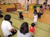 遊びの途中でお友達の名前を読んだり、手遊びや絵本を読んだりしました。ママと一緒に...